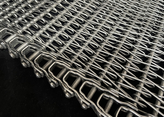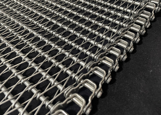 Questo tipo di cinghia di maglia in acciaio inossidabile è progettato specialmente per trasportatori a spirale o rotondi e trasportatori a corsa retta.la cintura può essere utilizzata anche per trasportatori disposti per aggirare gli ostacoliLa cintura a barre flessibile è molto diffusa nell'industria alimentare, compresi i prodotti di raffreddamento, cottura o congelamento.