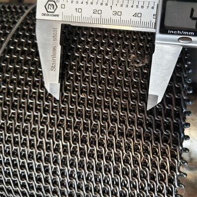 La cintura da cottura per biscotti è una cintura a spirale di metallo stratificata con un peso leggero e uno spessore ridotto.e buona circolazione dell'aria attraverso la cinturaQuesta cintura tessuta e stratificata dà una sovrapposizione dei fili e una rete aperta.